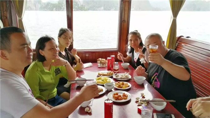 16日天氣轉(zhuǎn)晴,阿松說他們信奉燒香拜佛,前天晚上燒香至凌晨4點(diǎn)祈禱天氣晴朗讓我們?nèi)ンw驗(yàn)下龍灣的風(fēng)采,果然皇天不負(fù)有心人。于是18羅漢愉快地開啟了早餐時(shí)刻:越南的牛肉粉真的巨好吃,每個(gè)人至少只吃了3碗而已。