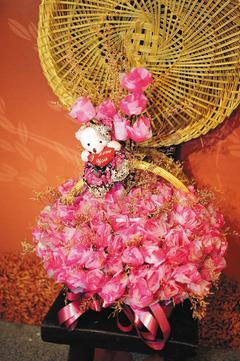 她舉例,過年可利用裝香的香袋、紅白塑膠袋等,裁成長型,再卷一卷,就成為應(yīng)景的玫瑰花束,「與其花1000多元買不到1周就枯萎的花,不如動手做,看膩了還可拆下來,重新組合」。