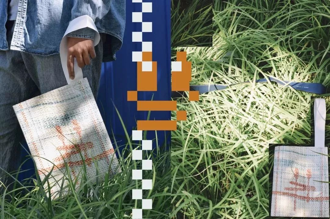 設計主要從編織袋材料質感印制到Tyvek? 材料上的沖突感和矛盾感入手,著重表現了編織袋的紋理與光澤,并從編織造成的格子肌理出發,創造像素風的圖樣。圖樣主要以輕松愉快與些許懷舊感為主。